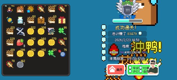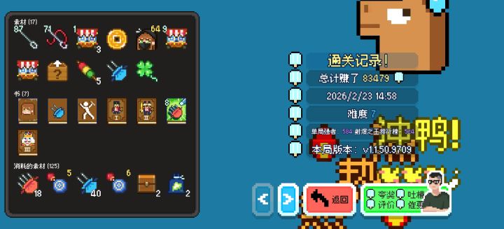 鸭鸭复刻活动上线!这次上榜要求变成9个鸭鸭!想挑战排行榜的玩家还请注意哦新装备池其他更新靶场活动奖励贴纸发放三只鞋子活动榜单奖励展示卡池更新神赐傲娇项链,质朴守护项链,弹射起步项链,超级礼物,动物朋友们的袜子,存钱罐袜子,镶金边的魔女小镇地图,月亮精灵发卡现在可以在常驻池中抽出糖果王国现在糖果盒的效果范围变成全场糖果纸袋的生成数量+1问题修复修复每日挑战卡堆可能