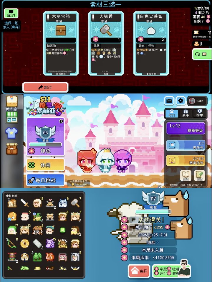 ·各位赛博游戏搭子们,我最近玩这个游戏玩的昏天黑地的~真的是好上头!!!·《如果一生只有三十岁》/Before Thirty,P1。·游戏平台:安卓/IOS/Steam。·像素肉鸽卡牌游戏。·实话实说,一开始我也不懂什么游戏,一直跳过介绍,然后就开始玩了。一开始以为是什么很无聊的游戏,结果就是很像《猫神牧场》的那种代餐,就是每关有个小目标,达到了就下个关卡,最后可以通关。·输了直接重新开