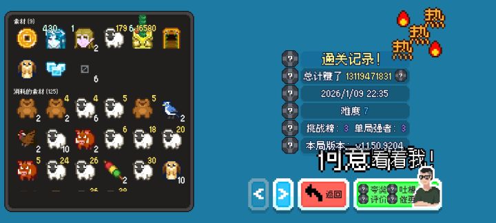 内容更新最近有些想找一款共斗游戏玩,所以制作了新的袜子!调整修复吨吨饮店调整小麦草汁为:合成效果:使合成结果具有基础{2}幸运。【精致茶叶】的效果变为+{2}幸运。最多含有三个小料。修复【古老的树洞】存在稀有度描述错误的问题,现已修正。修复第一个【奶油冰激凌】不生效的问题。修复持有【空想世界树】时开局仍有可能获得食客之门的问题。新模式预告新内容公布!我们正在尝试做每日挑战模式!但