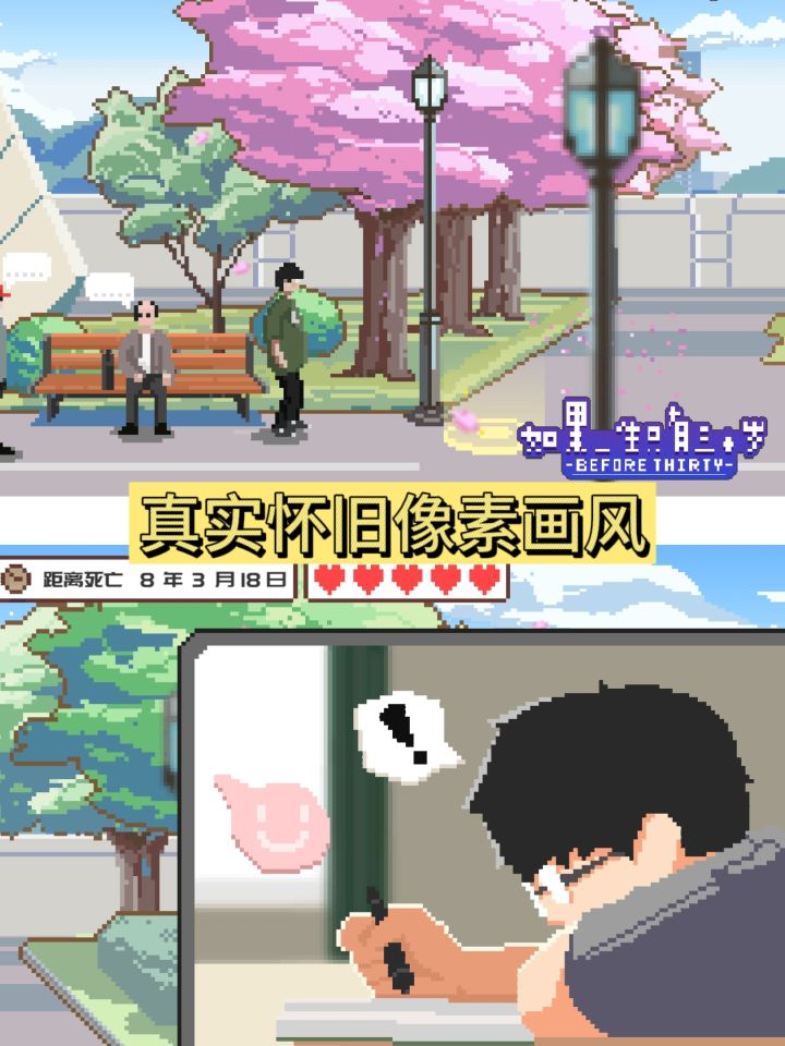 ✅游戏:如果一生只有三十岁✅关键词:像素|剧情解谜|Steam移植|怀旧✅福利:直降83%,五一期间仅需两元🔸🔸🔸🔸🔸💖【玩着玩着,莫名其妙的被刀了】当二十岁的你,重病缠身 知道了自己在三十岁的时候会离开这人世感受时光荏苒、岁月蹉跎的无奈,你会怎样继续?十年的时间,你会创造出怎样的奇迹?赶紧来体验,书写你的末日人生吧🔸🔸🔸🔸🔸✨超有怀旧氛围感的音乐✨真正走心的故事剧情设计✨