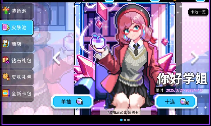 如果有任何建议和问题,欢迎加Q群,群号:549180217来吐槽我也是可以的。赛季奖励预览更新按照惯例,在赛季结束的时候,榜单玩家可以获得赛季奖励皮肤。这次的赛季奖励皮都是动态哒!具体可以去排行榜查看~装备进阶系统更改之前的装备进阶(即抽到重复装备的时候),都是单纯的加了下初始的👍数,现在做的更细致啦。如图所示。不同的装备有不同的进阶效果。暂时有 初始赞、初始幸运、额外