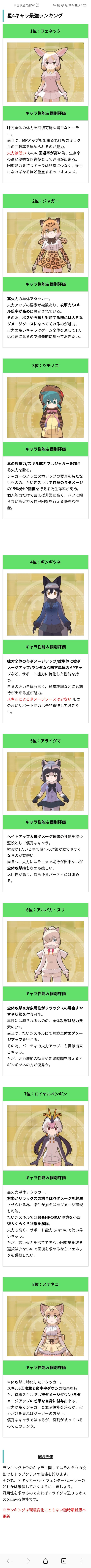 某日系wiki网站的强度榜http://risemaragatya.com/kemofure3-ranking?tdsourcetag=s_pcqq_aiomsgPS:本人厨力玩家(friends只要萌萌哒就够了),因此以上榜单仅供参考,谢绝斯比PS:小斑马真可爱ovo,awsl