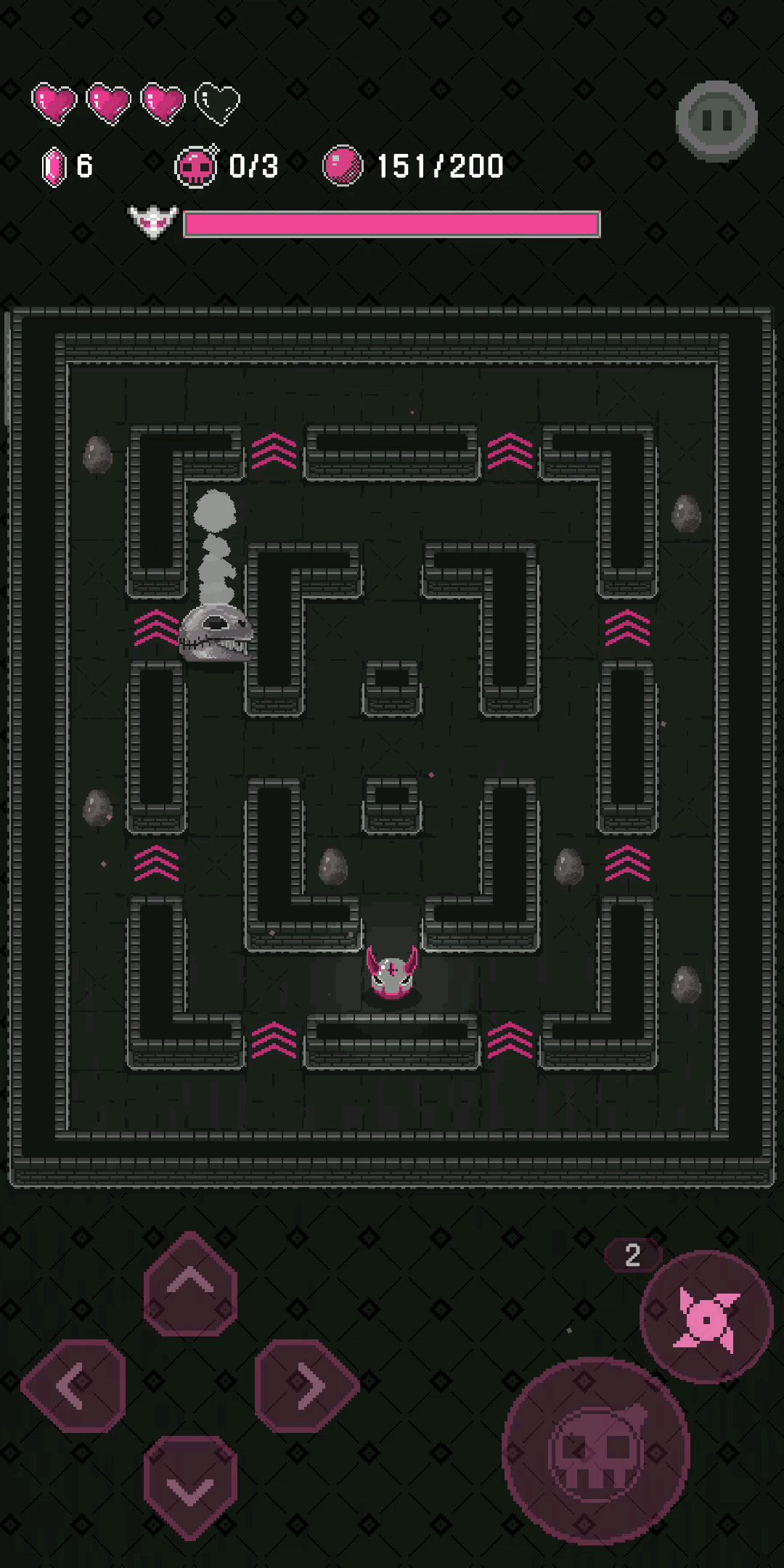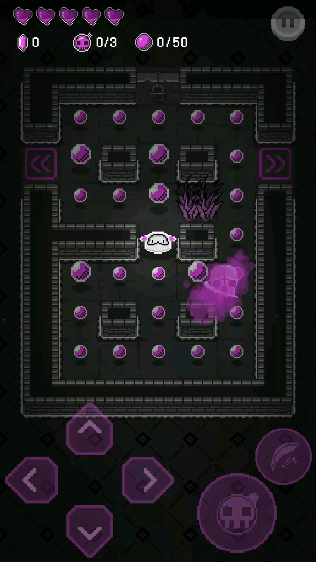青蛙会在空房间内留下许多小球,撞击小球会让它与墙壁反弹,但一段时间不碰会消失,或者再碰也会消失,人物撞到小球或青蛙会扣血。
