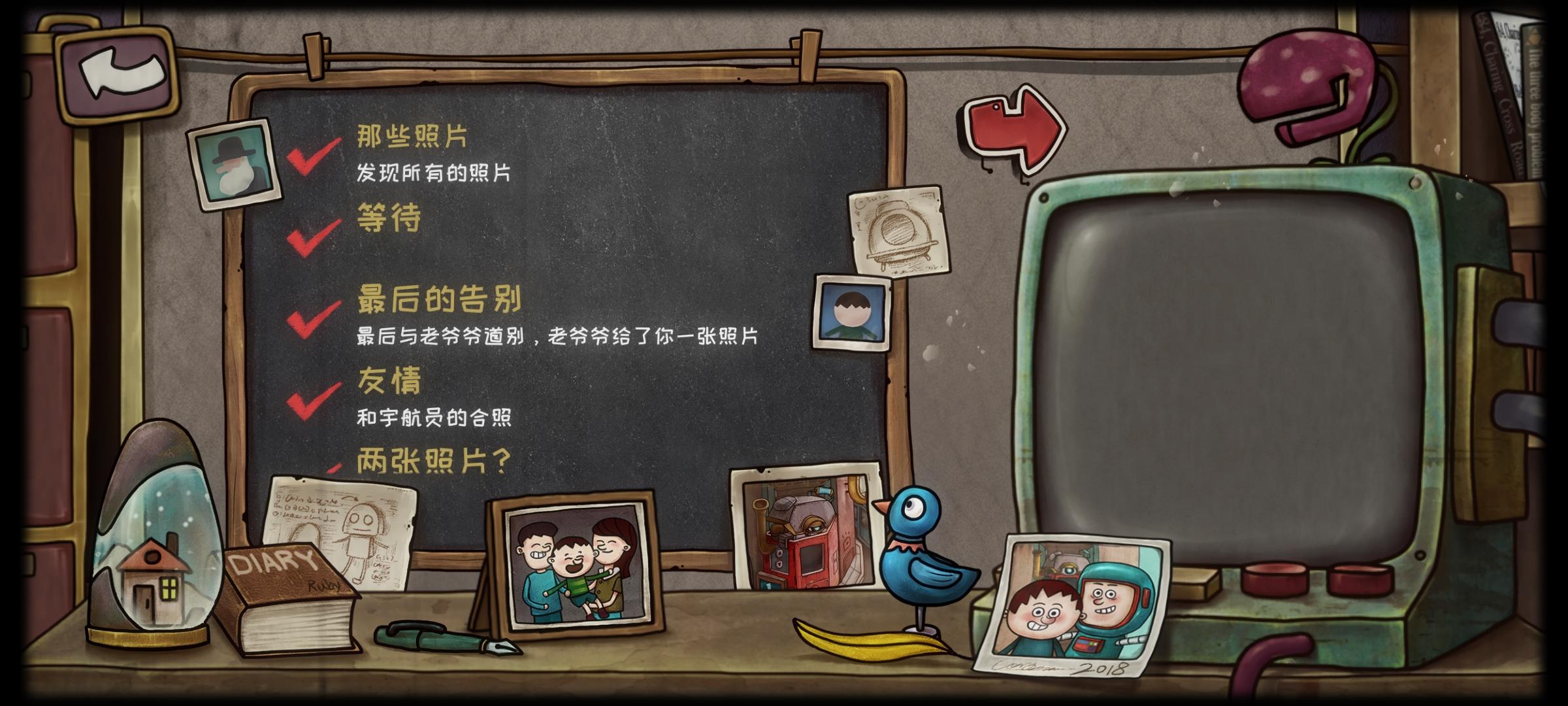 ★瞭望台★,走到头看桌上老人的日记(保险柜拿到的钥匙开行李箱拿照片),最后一页照片,找老人看望远镜用日记内容金灰绿黄蓝连接星球发现地址C. E:xxx,日记图案打开来时第一个放能量棒的柜子,旁边板板点亮日记红圈字我心飞翔眼亮光快乐向上向前无限,新机器里放好能量棒,调制程序拉杆全部上拉、切换星球、输入地址(跟老爷爷道别),按下启动键出发。