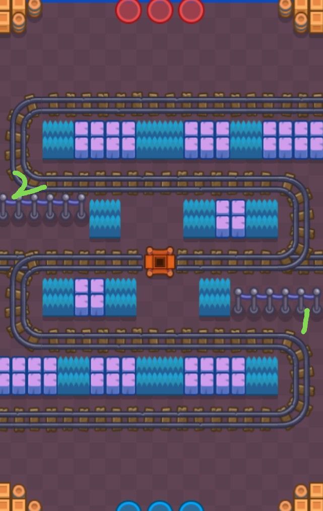 大家好,我是帝国无云,欢迎来到本期攻略:荒野乱斗xTapTap官方1群:879554057承接上期:【坚石壁垒】 这张图的中场和外场都有半包围式的草丛。我们的思路主要是把内圈和外圈的草丛连接到一起,让罗莎能够做到潜袭式攻击。同时将草丛延伸到宝石矿井处,这样一来,敌方就完全无法捕捉我方罗莎的运动轨迹。我们可以在任何地点以任何方式对敌方英雄进行突然袭击。当然这是铺右边的方法,铺左边也一样是