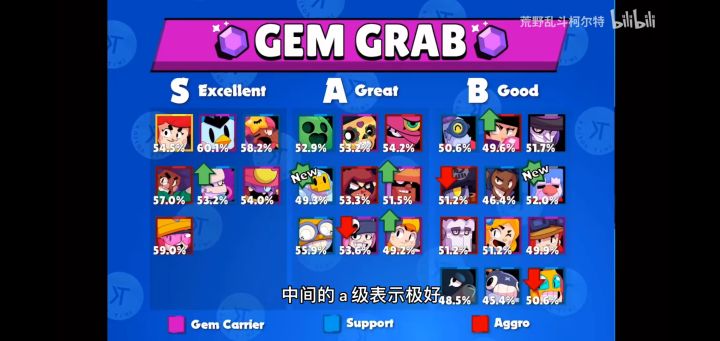 国外游戏大佬统计的英雄强度排行,具体视频链接https://b23.tv/Lin7iw这是国外大佬KairosTime的第十九个版本的英雄强度排行,可以说是最权威的了,英雄排名都是基于单英雄700杯以上全满级的数据。 当然排名只能作为一个参考。每个英雄适合的模式地图不一样,下面是各个模式英雄强度排名宝石争霸乱斗足球金库攻防赏金猎人机甲攻坚单鸡双鸡最后是综合的排行简单来说升s