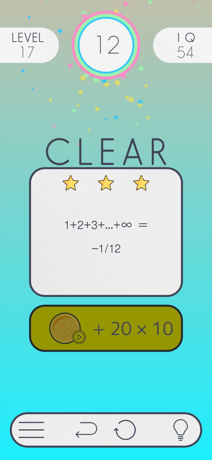 我挺喜欢这类游戏的,首先和我评论里说的一样,他下面有个步数提醒,如果超过步数则得不到三星,我不想看广告就只能重来。当时我一直很疑惑,怎么达到那个步数,我试了很多种走位,后来我用了另一种解法发现刚好够。后来我玩了很多关,达到要求数字的方法有很多,但不是每一种都是按步数来的。所以想给大家个建议,实在达不到步数,可以试试换个想法。简单模式的含义大概是更容易想出来,前面二十多关不侧重除法,都是看几眼就出