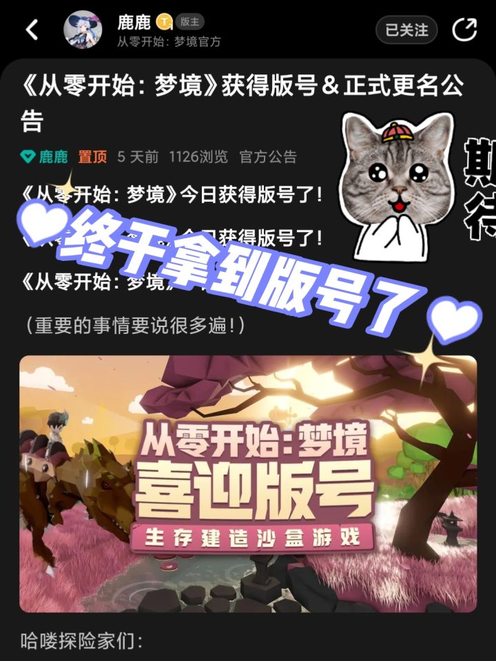 (已开奖)《从零开始:梦境》测试定档7.11,测试资格已公布!