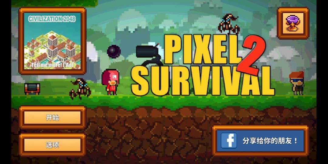 这款手游叫【像素生存游戏2】,可能比较有优势的地方就是可以多人联机,和周围的朋友一起玩,当然也能玩单机版。