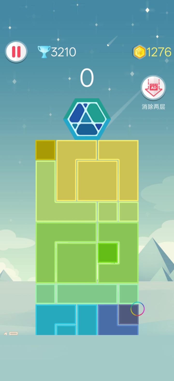 只玩拖动模式,发现一个非常恶心人的设定,存了三行只差一竖,偏不给你,最后一个大方块压死你,建议玩的时候在中间留空