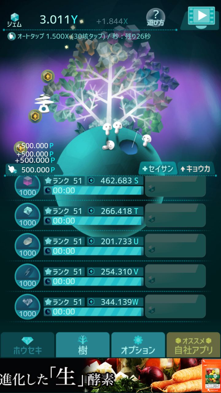 花了几个星期吧,没有事的时候就来点点,升升级,还是棒棒哒,推荐给好多小伙伴们玩,虽然她们不懂日语但是还是可以玩的下去呀,就像养一个小生物一样的,感觉看着它一天天的果实累累感觉很欣慰呢。就是不知道这个的底线是什么,100Y还可以往后继续走,不知道这游戏有最大值么?有人到过最大值么??