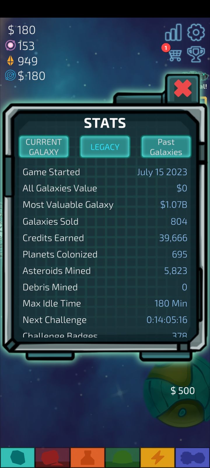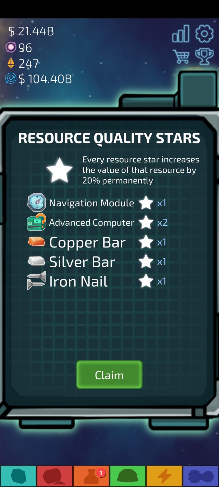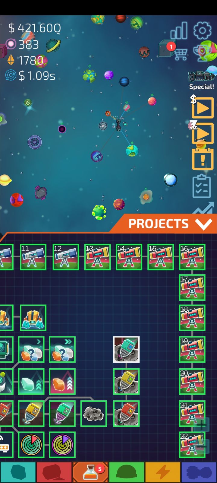下了个新版本重新玩的。版本号1.25.2,最高星球70号(1)craft里最后一个能造的(也是最贵的)基础售价是1Q,基础制造时间为170天现实时间。(2)需要购买34号星球就能造出来。之后35-70号星球只是为了开新星球,没啥太大意义了。(3)50-70号星球购买价格分别为3.8 10 25 60 150 360 900 2600 7500 21000 59000 170000 46000