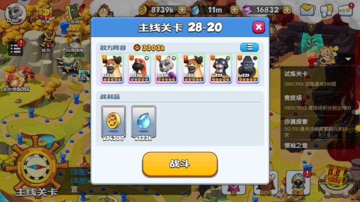 新手攻略贴-零氪篇1.前期浣熊射手,可以用到140级,绝对好用,抽到必用。强化到6星,不要再上了,后面就没用了。2.140级浣熊下阵容,换主力。狼游侠,河马游侠,虎刺,秃鹫刺,猫刺,猫游侠,抽到任选一个可做主力输出培养,其他看阵容搭配。豹子留着,豹骑士和豹法师推关卡有奇效。3.钻石不要随意浪费,开局130抽就不要抽了,只抽每3天半价和保底五星,中期买7星装备2-4套,看个人存钻石量买。过16