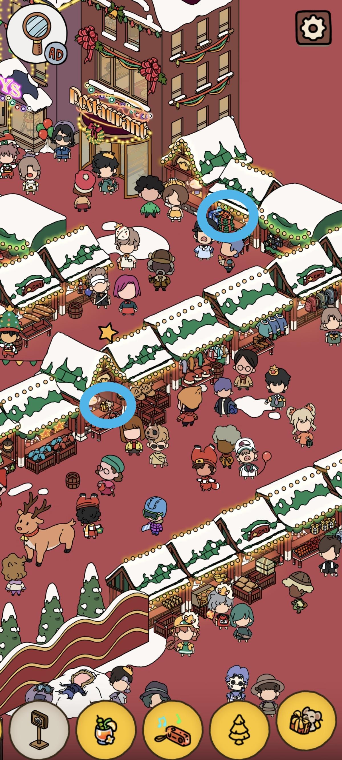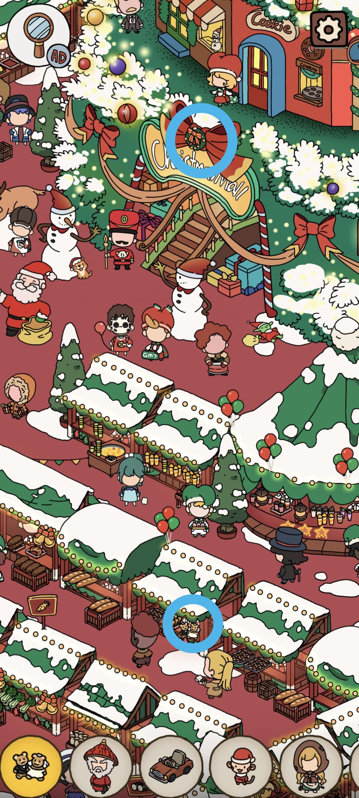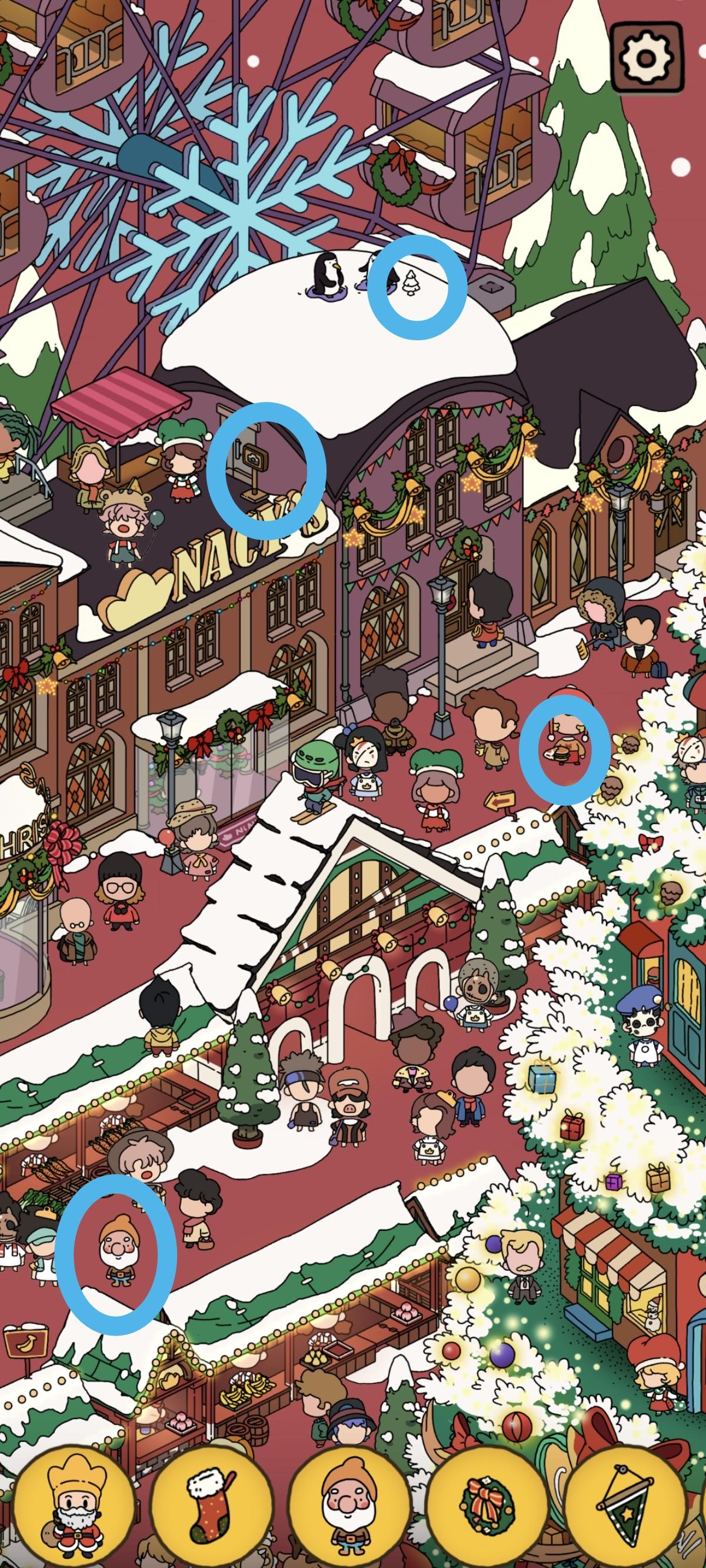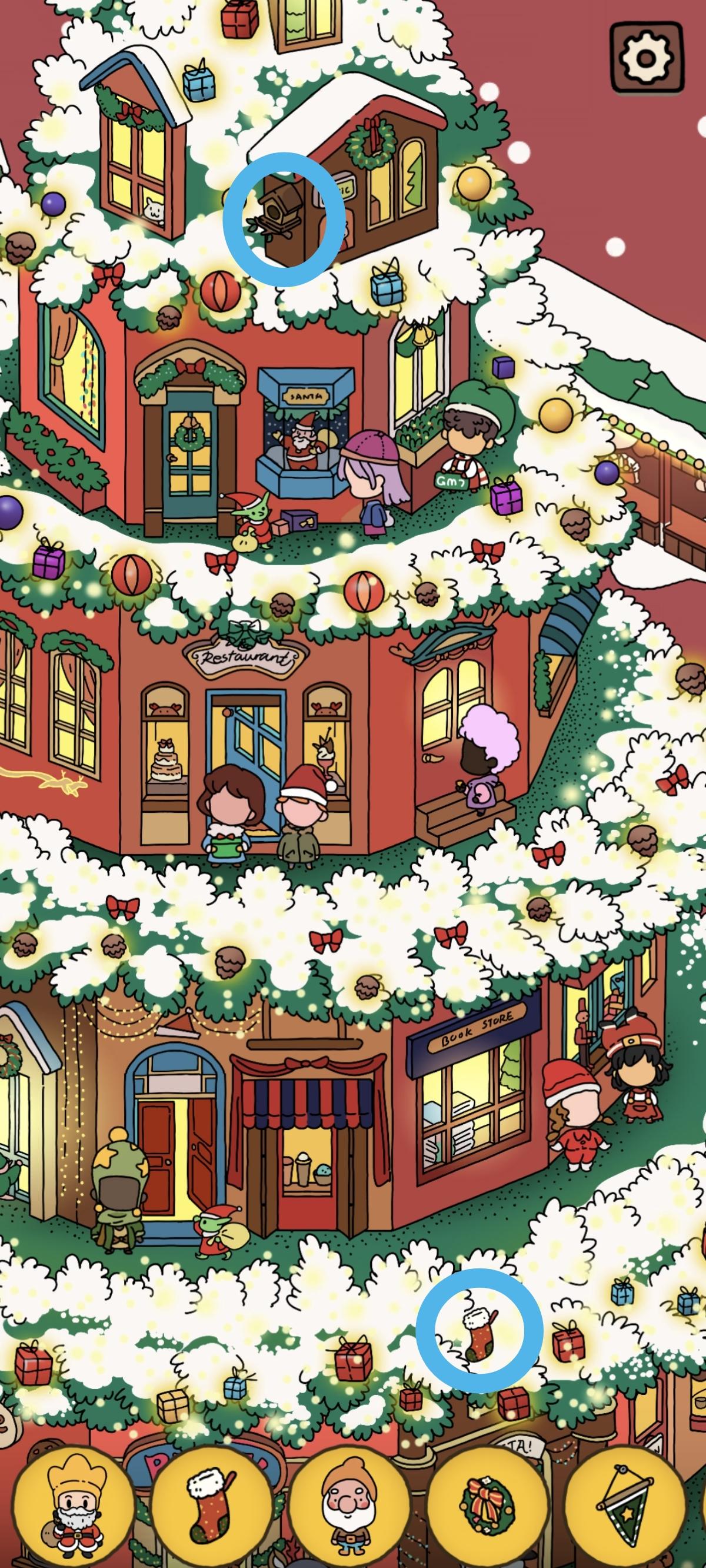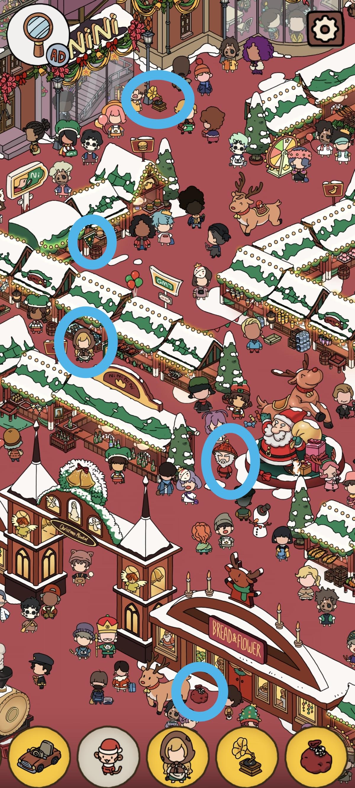 p1:妮妮 放射灯 小汽车 猴子p2:圣诞树 拍照点 汉堡 派送礼物p3:树屋 礼物袜p4:留声机 挂旗 逛吃中 我全都要 礼物袋p5:录音机 鼠鼠p6:小甜水p7:花环 情侣熊