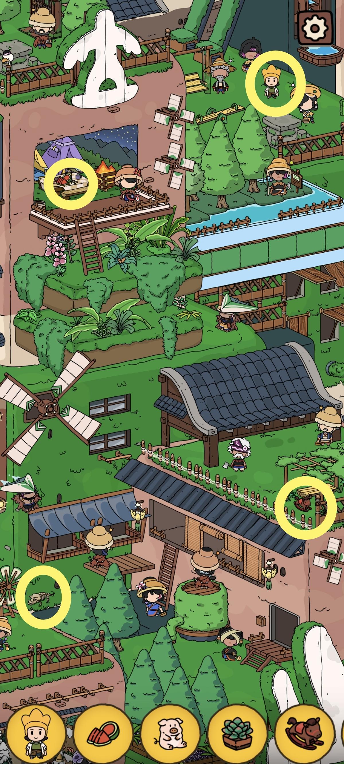p1:妮妮 西瓜 化石 木马p2:琵琶 虾p3:小鸡 蛋糕p4:香蕉皮p5:功夫秘籍p6:多肉植物 空调外机p7:狐狸尾巴p8:宝箱p9:金币p10:书 猪p11:鼠鼠 石井p12:兔子