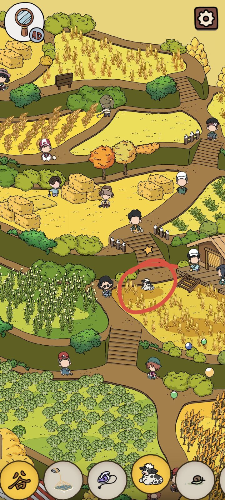一小部分找到的东西1、葱、蜷缩猫2、趴着猫3、笼子、舞狮头4、小老鼠5、谷仓6、吃草小牛7、熨斗8、小猪9、羊毛#攻略