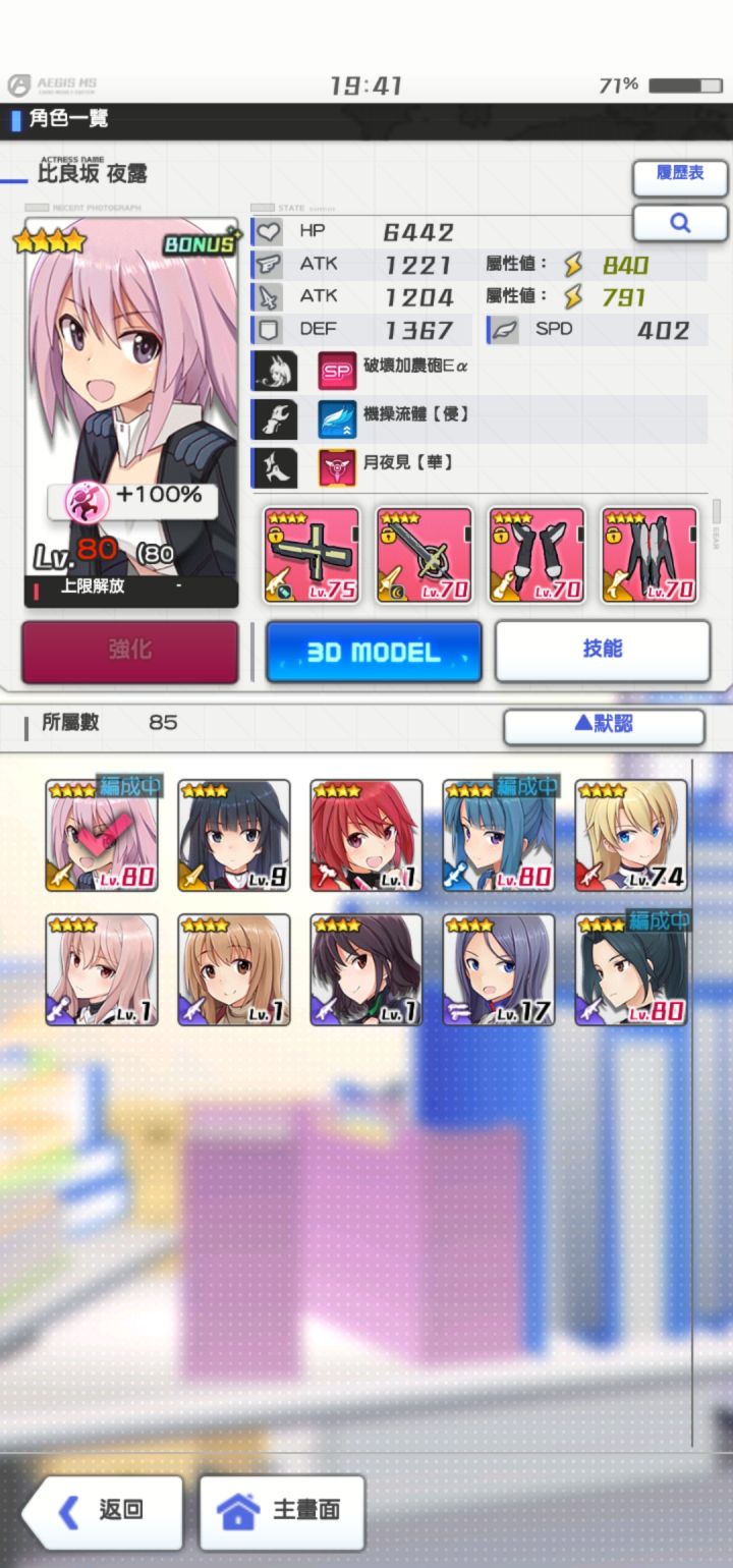 游戏不错,但是台服明年一月关服死球子,完蛋玩意,晒下号有的角色:54个四星,战女高4人组+机甲3人组+飞机小迷糊1,2全收录没有的角色:除了挠屁股胶佬+火系双子狙其它都有了,没有an卢海 an文嘉 an忍者。对了,没有棒球妹(因为她的机体过于环保就没想抽)装备:近20把80级+99武器,服装:衣服除了黑皮泳装和大部分护士装都齐了(还有几件衣服票制服觉得难看就没换),7000电池时间:前前