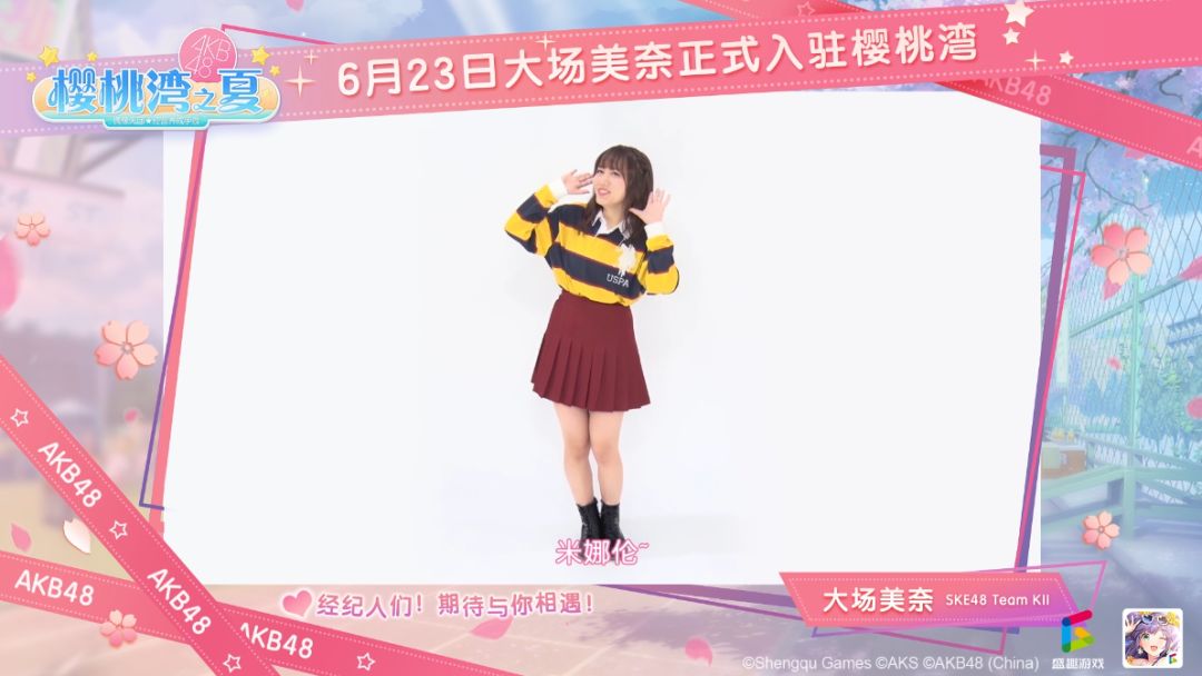 各位经纪人,樱桃湾今天又给大家带来了一个重磅消息,《AKB48樱桃湾之夏》的偶像天团养成计划又壮大啦!本次加盟的小偶像是来自SKE48,爱称“米娜伦”的甜美女神大场美奈!【大场美奈小档案】姓名:大场美奈粉丝爱称:米娜伦所属队伍:SKE48生日: 1992年4月3日星座:白羊座血型:A型身高:150cm提到“米娜伦”大场美奈,无疑会想起她优雅甜美的外貌、性感有魅力的身材以及全团第一