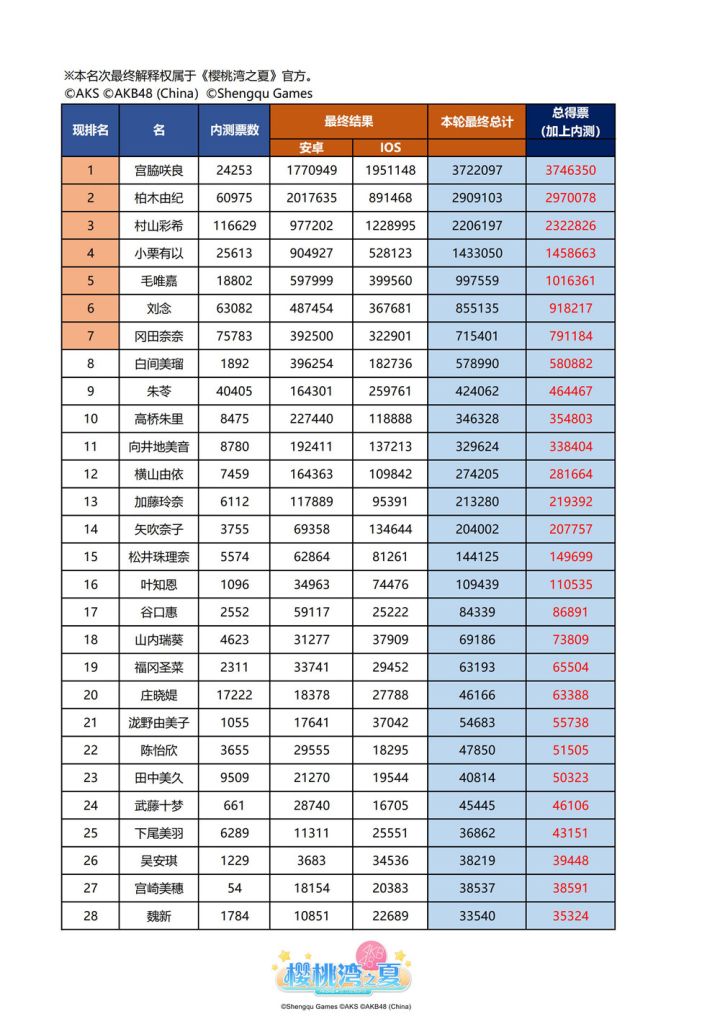 最新特报:AKB48正版授权偶像经营互动手游《樱桃湾之夏》偶像应援战落幕,樱桃湾首届“神七”偶像由玩家共同票选产生——宫脇咲良、柏木由纪、村山彩希、小栗有以、毛唯嘉、刘念、冈田奈奈。《樱桃湾之夏》偶像应援战在之前游戏内测的时候就已开放,玩家可以通过游戏内飞艇任务、最强偶像、王牌天团社团战活动,以及应援礼包可获得应援券为偶像投票应援。目前开放的偶像应援战为最终战,最终票选出来的成员将作为樱桃湾首届
