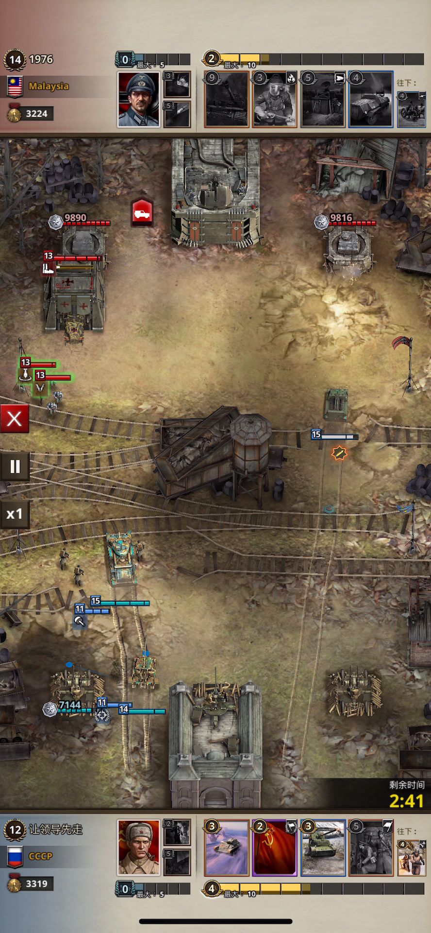 优势:费用低,万金油,反打也可以,等压1、2级也可以打 劣势:挡不住钢铁洪流和西德人海、迫击炮 战术:打坦克:近卫队和双卫队(卡1、卡3)一起,因为总费11,所以双卫队先放后面,然后等一费再把近卫队从边上放,或者枪榴弹、反坦克版,T-70收场 打人:游击队、刑罚、或者装甲车(卡5) 战绩: