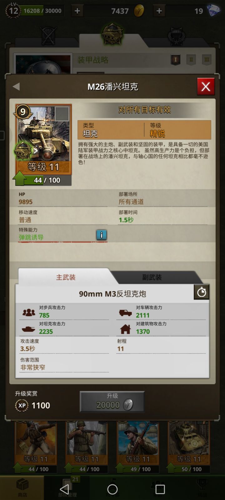 九点费用造价,相当于美军虎式坦克。重要地位可想而知。不过因为造价的原因,除装甲流以外,真的是很少带。装甲联队可以通过装甲重造,可以造成最多三架潘兴坦克压场,场面会非常的恐怖。不过,高费用坦克的弱点也是很明显的,再怎么强也只是一架坦克而已,可以被反坦克操作班或者是操作班阵地给远程风筝,一直消耗直到死。注意了,即使是三架压场他也并不是无敌的。也是需要有人在旁边提供火力支援。这一点,帝王