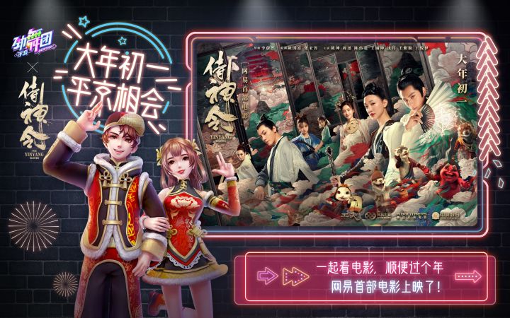 侍神集结,平京相会!社交音舞手游《劲舞团》携手网易开年电影巨作《侍神令》,与你共度喜庆愉悦的农历新年,奔赴人妖共存的平安时代,见证阴阳两界的爱恨纠缠!大年初一,电影院等你!【火红开年 阴阳两界状况频发】东方奇幻巨制《侍神令》即将于牛年贺岁档强势上映,电影改编自现象级手游《阴阳师》,以华丽绝美的东方故事、颠覆想象的视效奇观、奇幻电影顶配的幕后班底,成为不少观众呼朋唤友相聚观影的首选。影片讲述穿行