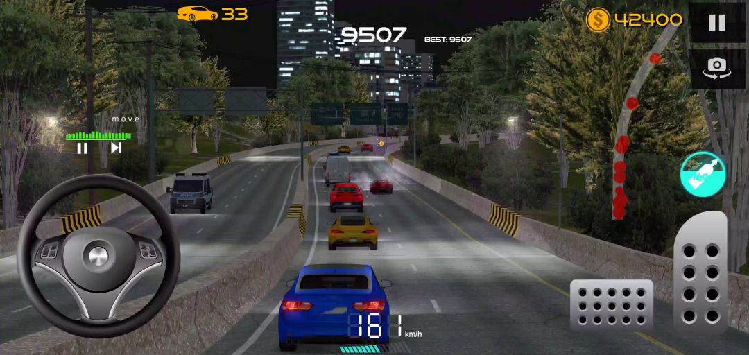 游戏的画面非常精致,汽车模型逼真,场景也非常有感觉。在高速行驶中,仿佛置身于高速场景上,感受到风吹过脸颊的感觉。 游戏的操作非常流畅,可以通过手机的重力感应就能够控制赛车,非常方便。而且,在游戏中还可以捡金币,氮气等道具。 游戏里面还有各式跑车,可以改装性能,更换颜色。还有不同的场景可以选择,非常棒! 强烈推荐,一定不要错过这款游戏!