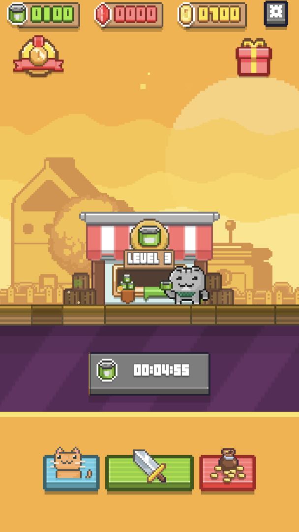 收集养成:收集游戏中的猫罐头可以在村子里贩卖获得金币。而金币可以购买新的角色或升级角色提升战斗力。