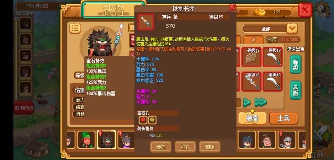 先贴一个唯一重要的 这是张飞的属性图,武力可以下调很多 根本不必要,等级可以无视,只要你有这个属性的武器,必须打暴击宝石其他不必要,没有就转移,做一把,衣服穿200%爆伤成长衣服,适当带减伤,我衣服减伤30%+不容易暴毙。 第二个就是关平的专属甲,一定要带嘲讽回血,具体程度不必要,必带一定量减伤,关平武器推荐用扇子 800+效果命中那种,没有就做一把,在不能带嘲讽甲情况下扇子要比刀枪棍棒都好。 第