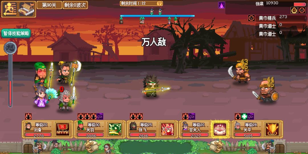 核心只需要一个张飞 50秒一大关(可打到北伐650)。 整体配置其实不需要这么高 现在伤害明显溢出 轻松打五十万 。 暴击加爆伤 围魏救赵可防。但个人是莽过去的遇见几率并不算太高。在伤害足够的条件下。可带超过35伤害无效化的宝石。或暴击回血的蛟鳄军。来防反击。 书籍带兵法。迅速普攻触发 天赋 200爆伤加成。 兵种最好带击杀加武力 第一波击杀 加成到最后一波。 场景加成也行。 甘夫人可以保证不翻车