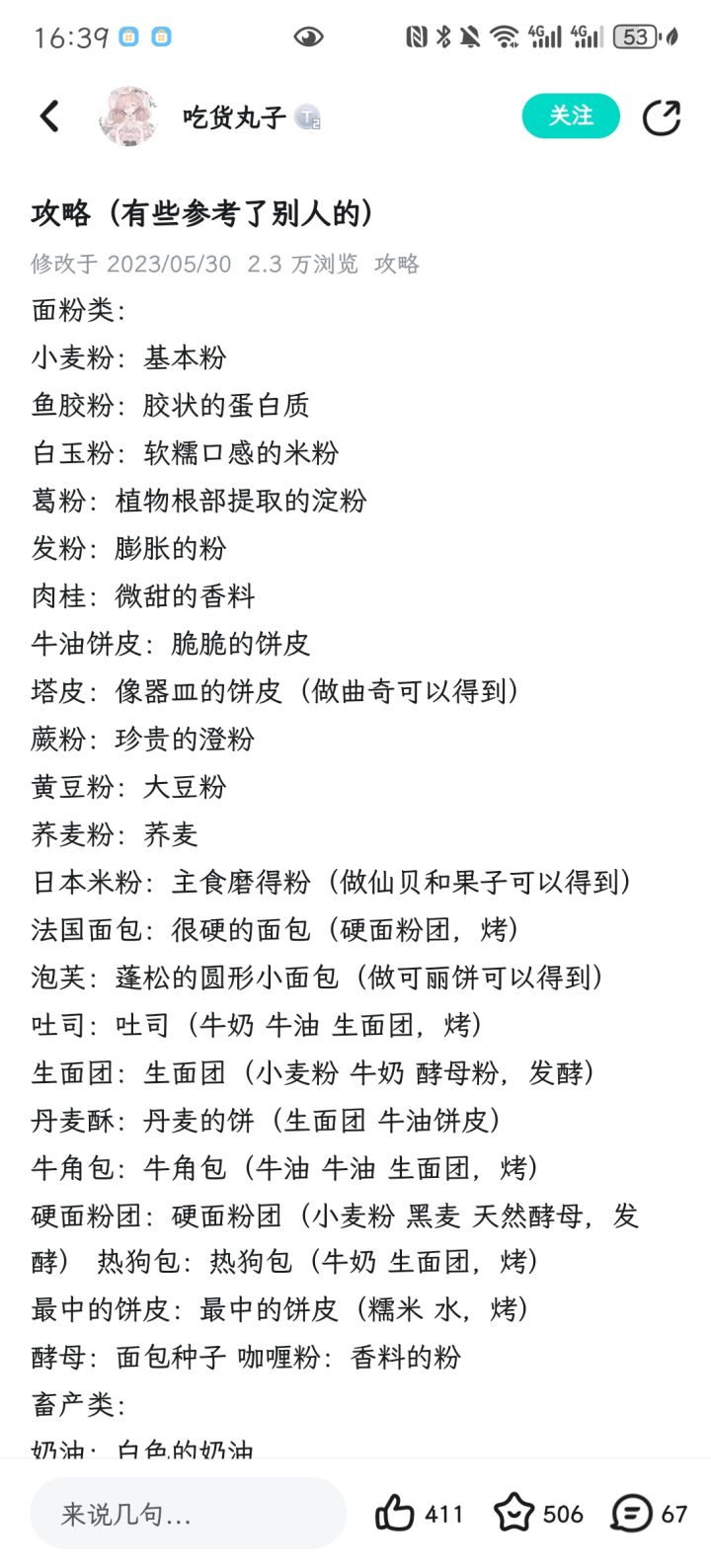 主要根据这篇帖子的攻略做了延伸,同时因字数限制所以攻略的其他部分会放在评论区。https://www.taptap.cn/moment/110132923750942855?share_id=4b7706ebfb08&utm_medium=share&utm_source=copylink面粉类小麦粉:基本粉 鱼胶粉:胶状的蛋白质 白玉粉:软糯口感的米粉 葛粉:植物根部提取的淀粉 发