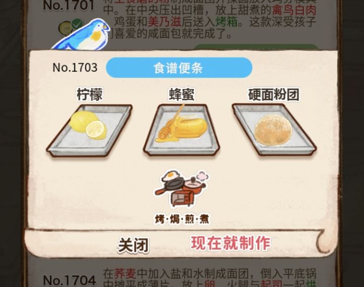 之前那个不小心删了,现在重发,有修改,如果按食谱做不出料理,其务必及时止损,并在评论区告诉我,我会修改再次感谢发食谱的大佬们塔皮(制作曲奇或者姜饼时获得)生巧克力(制作巧克力起司蛋糕、巧克力冰淇淋、松露巧克力或者巧克力派获得)日本米粉(制作八桥饼、生八桥饼、酱油仙贝、日本蒸果子或者盐味仙贝获得)豆浆(制作黄豆粉曲奇、红豆寒天、豆大福或经典甜甜圈获得)泡芙(制作可丽饼或千层蛋糕)优格