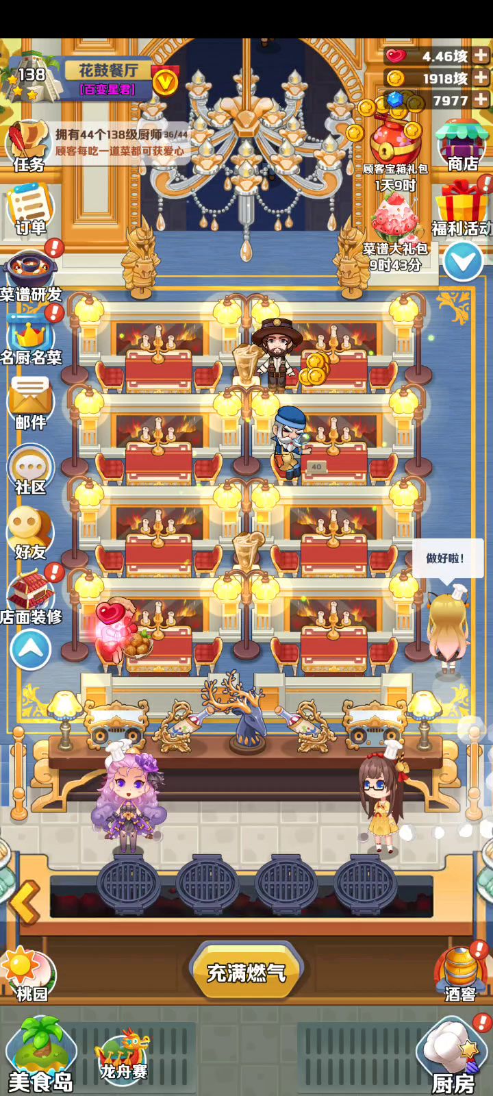 亲,挂机收益问题我们已经热更修复,感谢您对魔幻厨房游戏的一直以来的支持与理解