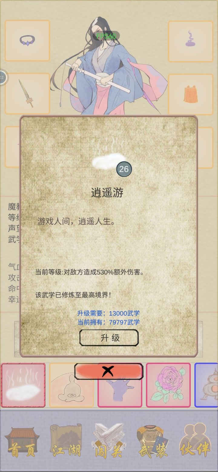 这个游戏属于半成品,所以对剧情什么的不必太过在意,只需要把地图上能拿的全拿,然后就开始闯关。闯关会给装备记得换上,注意橙装比红装更为稀有,不要吝啬铜钱,该扫荡就扫荡,到后面扫荡会电表倒转越扫越多的,扫荡能帮你快速升级,提升实力度过前期。如果不嫌跑图麻烦的话,可以去多跑跑图攻打地方,钓钓鱼,去攒红宝书,攒满9本之后去兑换钥匙,兑完之后开密社会给较多铜钱元宝。注意注意刷关刷到西域毒王,可以在前一大