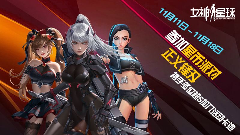 亲爱的指挥官们,星币派对招募活动即将开启,多位稀有S级女神加入卡池! (在卡池中若招募到S级女神,则有50%的几率为稀有S级女神) 正义锋刃 - 日向凛限时加入特殊卡池! 快来收集限时招募道具 - C星币,与宓雅一起参与活动吧! >>>> 星币派对 - 限时招募 <<<< 活动时间:11月11日 - 11月18日 稀有S级女神预览:正义锋刃、时之守卫、黑暗死神 注意事项: 1.在星币派对招募活动中