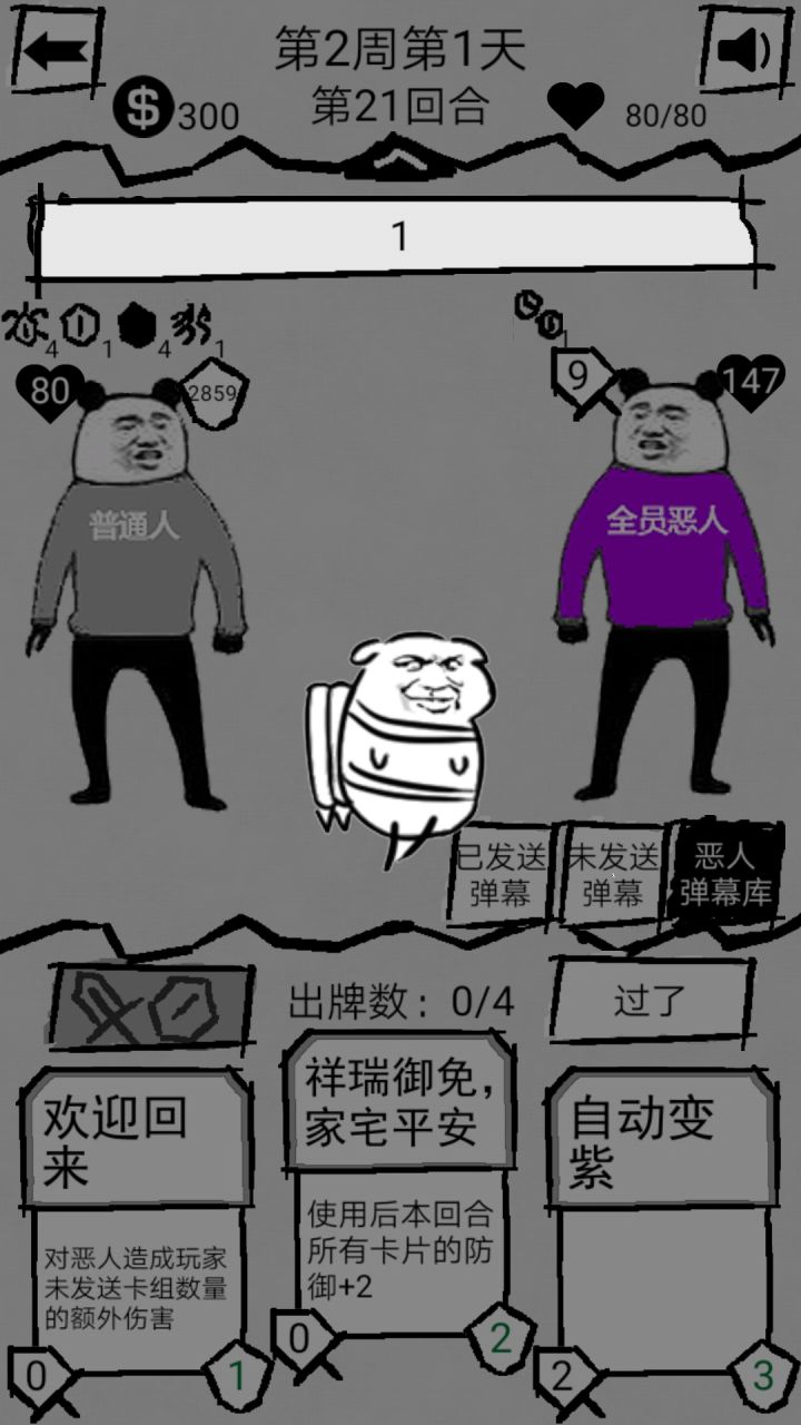 最恶心:“见封滚”流。可以让恶人所以加攻击的buff报废建议搭配:意大利炮,悠悠球,以及建议效果低的加出牌次数的装备注意事项:1.尽可能移除恶人所有塞卡的buff2.不要拿妹汁,不要拿妹汁,不要拿妹汁(到了后面随机事件和抽奖都可能得到妹汁,千万要小心)3.注意卡牌的攻击力提升,不然到了后面20回合打不死人出大问题(我那个第一是舔盒子得的,算失误吧)
