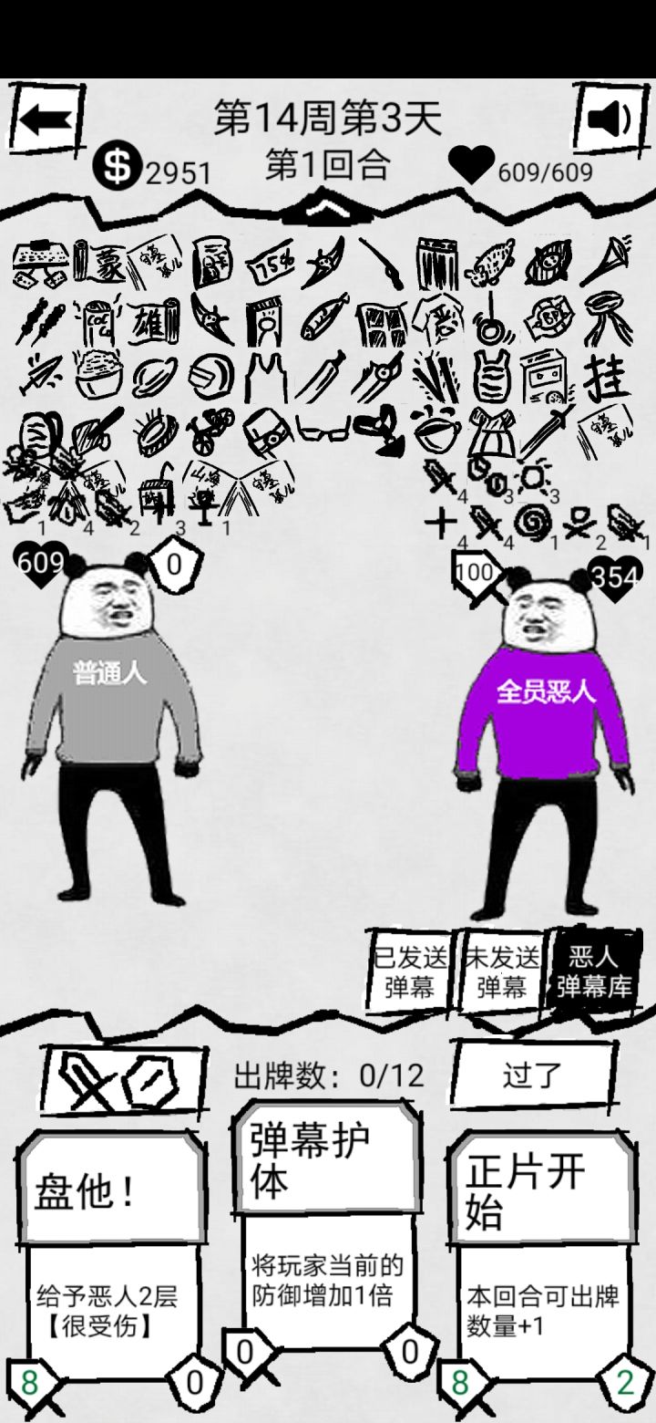 目前已经没有恶人能活过两个回合了,估摸着死法也就是连着两个回合断三层无力被一刀秒