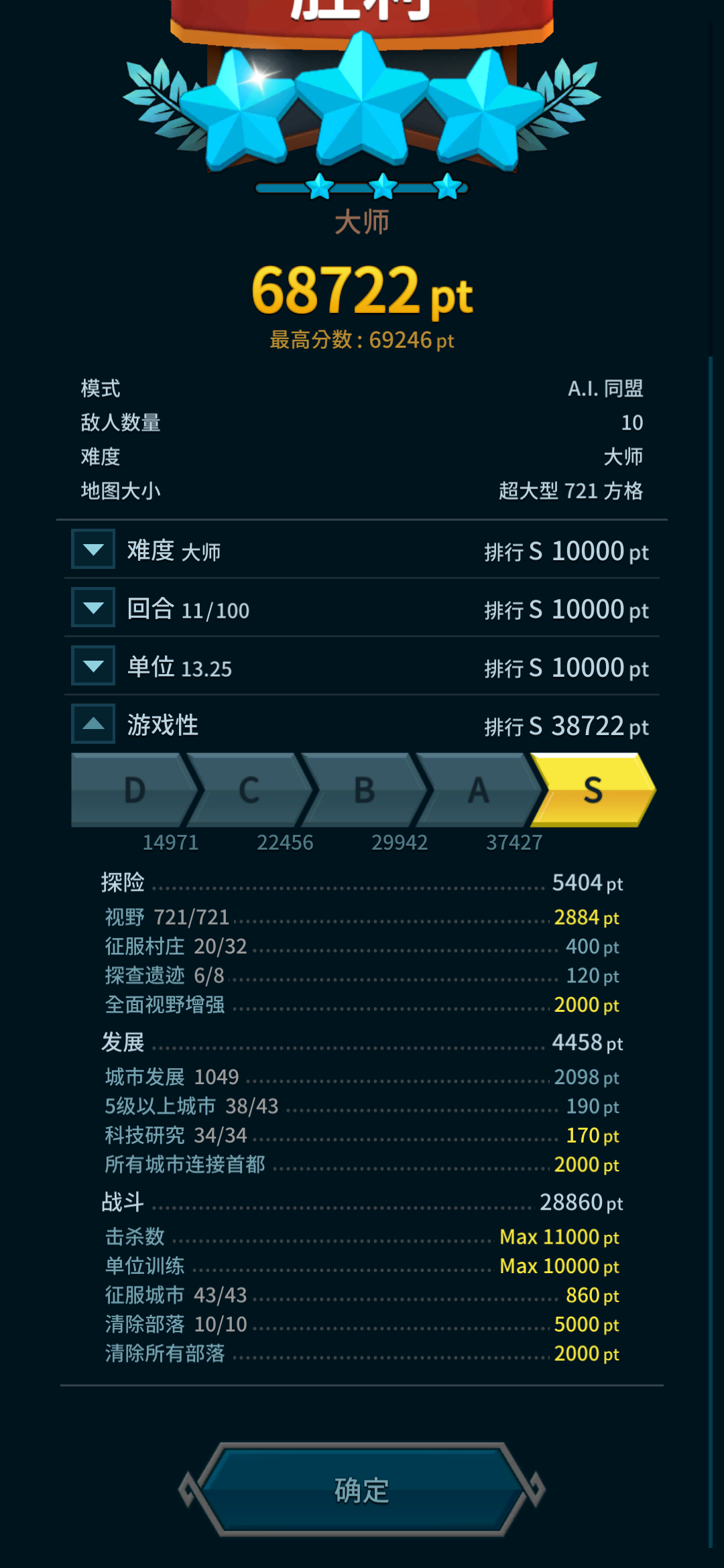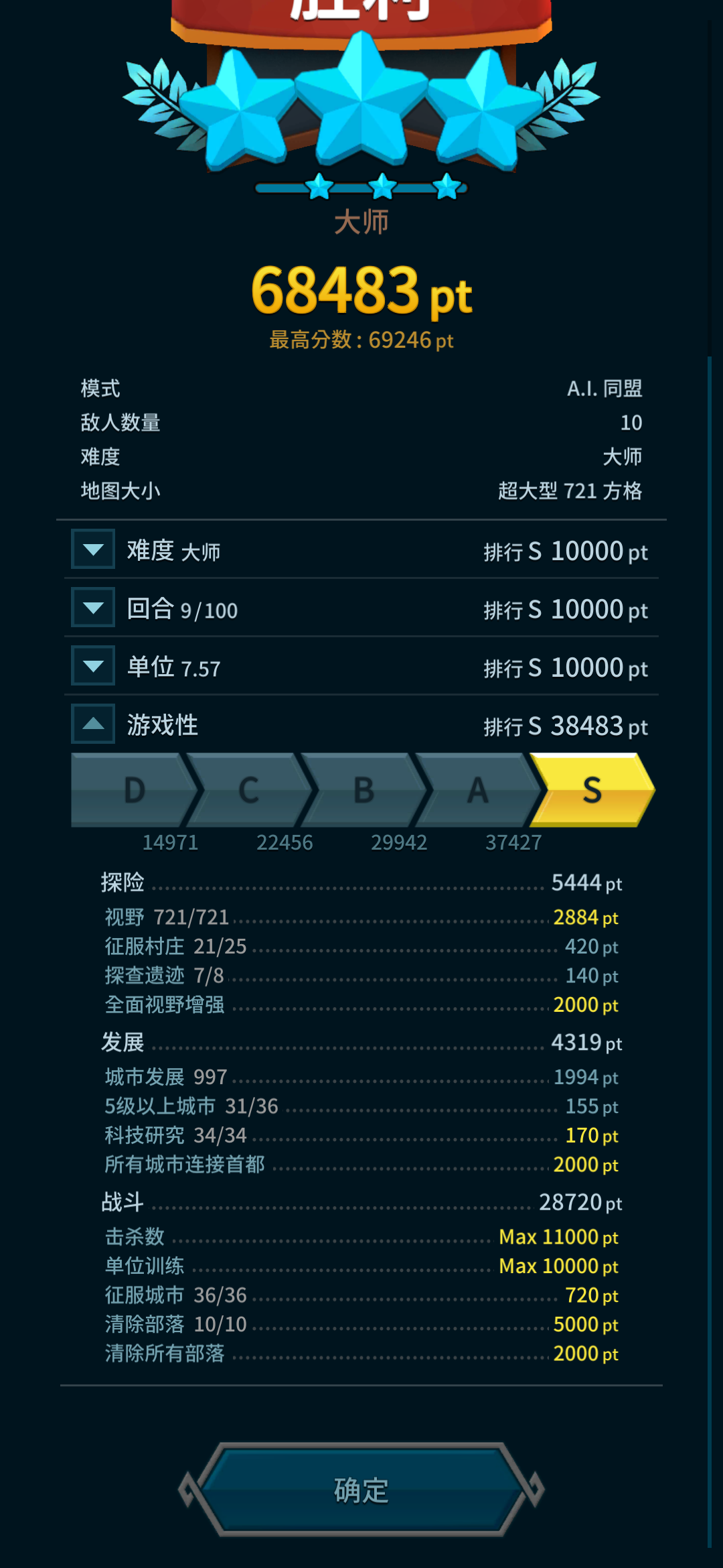 征服2/3以上村庄并探索一半遗迹