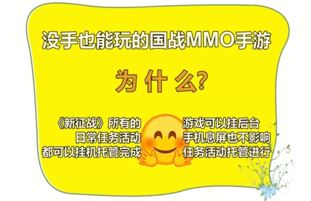 为什么没手也能玩?因为《新征战》所有的日常任务活动都可以挂机托管完成。 有了挂机托管就能获得的充足经验、装备材料、金锭金券和元宝券,在《新征战》实现躺平发育和非氪强大是无法避免的 那我们的手拿来干什么?当然是做有趣的事:激情的个人争霸家族争霸,帮战国战,日常BOSS世界BOSS,或者,只是和伙伴吐槽互怼而已#游戏安利#游戏推荐#武侠#MMORPG#国战