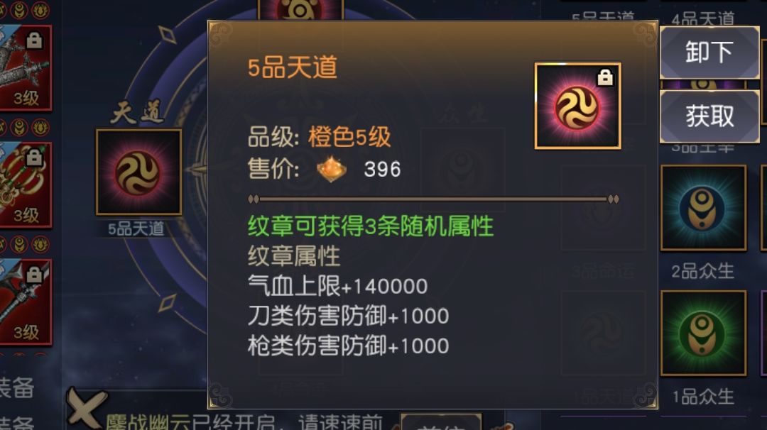 纹章这个玩法在九阴中也是一项非常加战力和属性的,是用于天命装备镶嵌功能里面的,分紫色和橙色二种,紫色可以通过大乘之上的禁地可获得 ,橙色通过商城和一些活动奖励活动,每种颜色的纹章都有相对应的套装特效,详情可参考游戏中的介绍,下面主要是介绍紫色和橙色1-5品纹章的属性