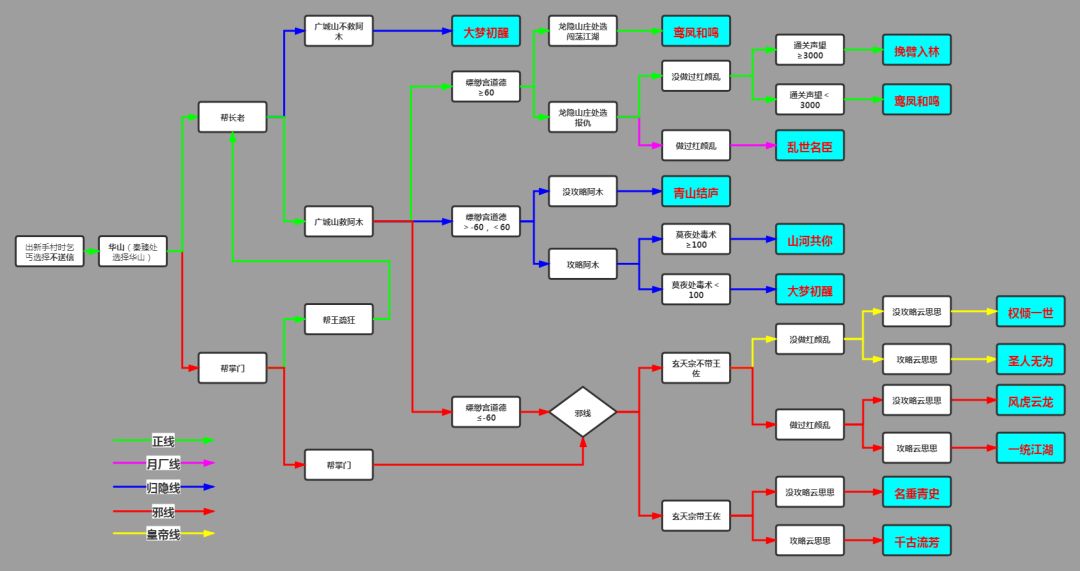 合集 分贴 豪侠三线分别用的是正线四象拳,归隐毒暗,邪线阴拳(阴刀) ————★主线:杭城秦臻处选择容我考虑考虑,进入豪侠线。 ★红颜乱:(此支线影响结局,先选择结局再选择做不做这个支线)门派选择以后,杭州会出现许多红名月厂厂卫,做主线去广成山厂卫会消失 选择-避战/战斗获胜,无后续。 选择-拖到12回合/血量过低,可触发支线〈红颜乱〉 选择-敌人太甚,奉陪到底,战胜,支线结束。战败,饮恨江湖。 选