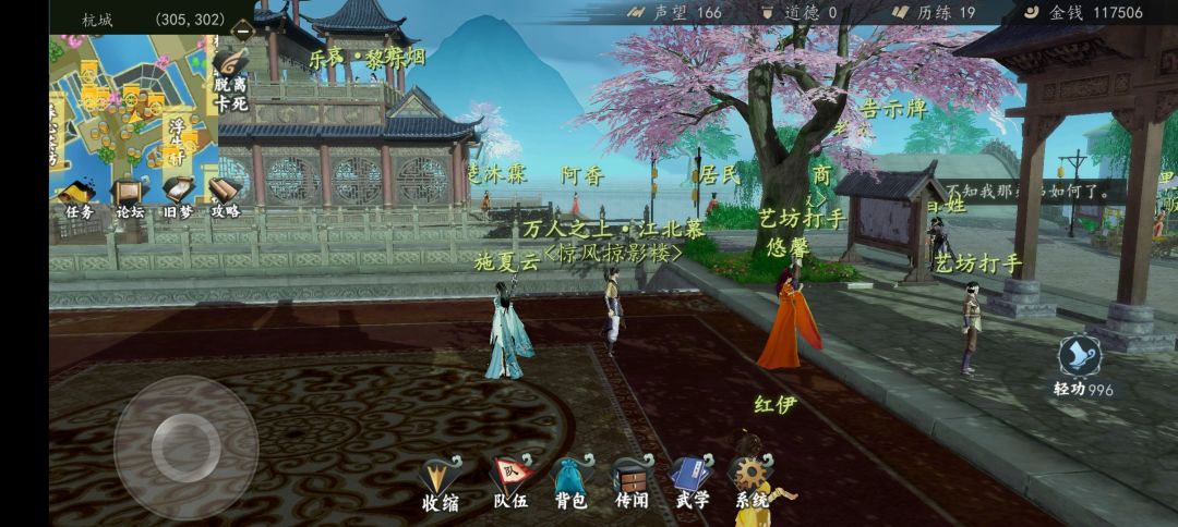 1.强势崛起 老样子,门派创建之后应提升门派的威严 不用说了,去了之后就是打架 然后去杭州 走到这里,会有人对话说不老堂,然后走到下面这层地方,然后就打架, 打完架后,你要回去,这是我们事不急先去这里走到这个地方,杂货店会让你买东西,你把三个酒卖完之后,女主就会出现,先点击进行对话 下面,有两个选项, 一.是看前方发生了何事 二.是先找安宛 选1.然后就会出现2个选项 1.选直接出手,剧情结束后,
