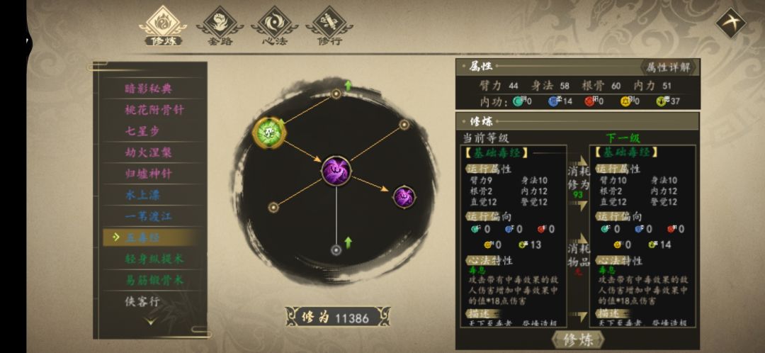 8.10更新 入坑暗器个人见解 目前暗器主流为阴柔天赋开局,心法主九阴,门派为加入长春门,获取生死符(橙阴)。 对应的阴性加成暗器功法为下面的1.2.9。中期可以去获取侠隐飞刀(金毒)。其它毒属性功法也可以用,只是加成没阴属性功法高。 前期攻略:可以剑转暗器,也可以直接暗器开局(较难) 在村子里,有点小钱就买30水藻,钓30次鱼起本金。 有了本金后,杂货店(100玄铁),铁匠(100玄铁),购买玄