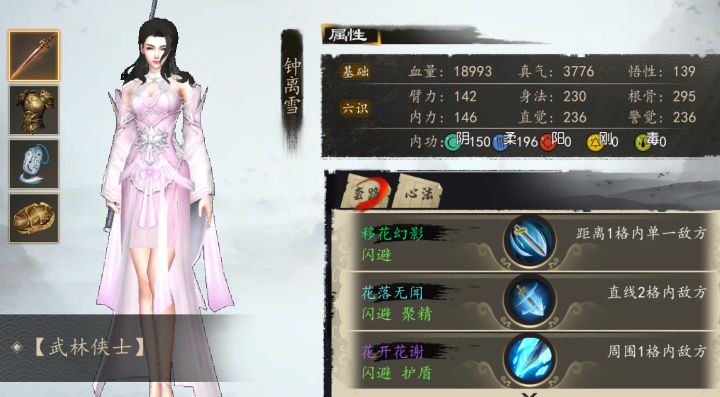 极限目标:无心法无招式无装备无队友主角单过宗师正邪大战。啥都没有,这咋过;嗑药扛白,但没有输出咋能赢;没事,良心策划50回合平手算玩家赢。天赋:别选十三太保(有反弹,弹死小怪就不能卡位了),金刚体(加生命内力10%),铁骨(声望减伤)养成:堆血量5w+(心法,小吃,生骨丹),堆根骨150+(洗髓丹)、内力150+(混元丹),身法150+(疾风丹),警觉300+(小吃,心法,书,破妄无尘丹);