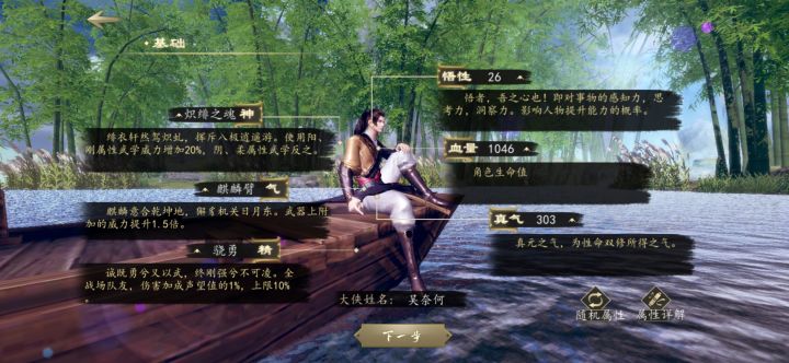 一、【开局选人物】1. 选个喜欢的天赋,悟性:28(后面领悟功法都要悟性,不要随机的太低)2. 再取一个响亮的名字:<勇敢牛牛,不怕困难>3. 武艺就随便刷刷,选个喜欢的刷高一点,比如玩剑就把剑术刷高(数值后面可以刷上来的)4. 六识刷一下<臂力和内力>,这两个可能有点用(后面拿箱子,推石碑)5. 技艺刷一下<医术>,这个可能有点用(后面开圣手天赋)6. 传承选一下,难度选一下,(宗师