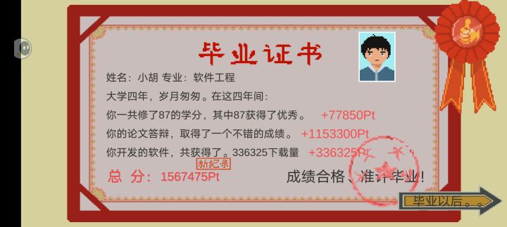 这真的是一款与众不同的游戏。它的不同之处不在于机制设置,而是在于所承载的情感——无论是一种追忆和遗憾,还是一种警醒和鞭策。上到治国齐家,下到恋爱烹饪,远到修仙求生……策略游戏可以以无数种方式呈现,但唯独当游戏融入生活的骨血与情感的温度,游戏才有了艺术性的丰满。我想,这款游戏正是源于创作者那切切实实的生活体验,洋溢着他那个年代的文化符号。挺不好意思的是,在下正是一枚大学生,过的生活基本上约等于