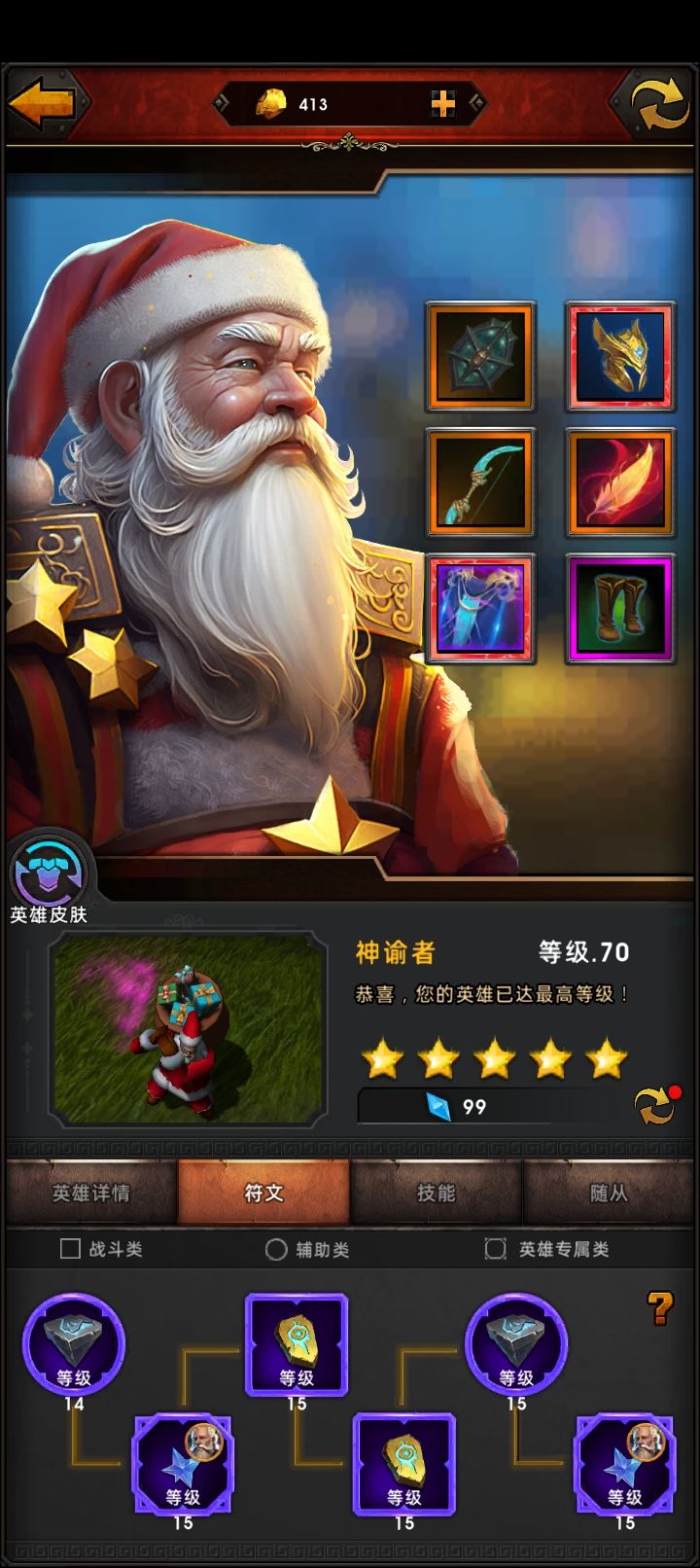 这套玩法主打消耗,通过治疗技能磨死对方。核心需求:圣诞老人皮肤的圣诞奇幻夜技能。通过多种减伤控制方式,尽可能减少自己部队损失,该玩法对法术强度有一定要求,需要保证4技能治疗量或者符文和秘宝等要追4技能等级,这套玩法有一些忽视属性配比三围属性依赖比较好的巨龙养成支持。 1.关于技能加点,4技能加满,这是神谕的主要功能技能。。1技能加满,神谕主打治疗消耗,敌人如果无法快速处理掉你,让你释放完所有4技能