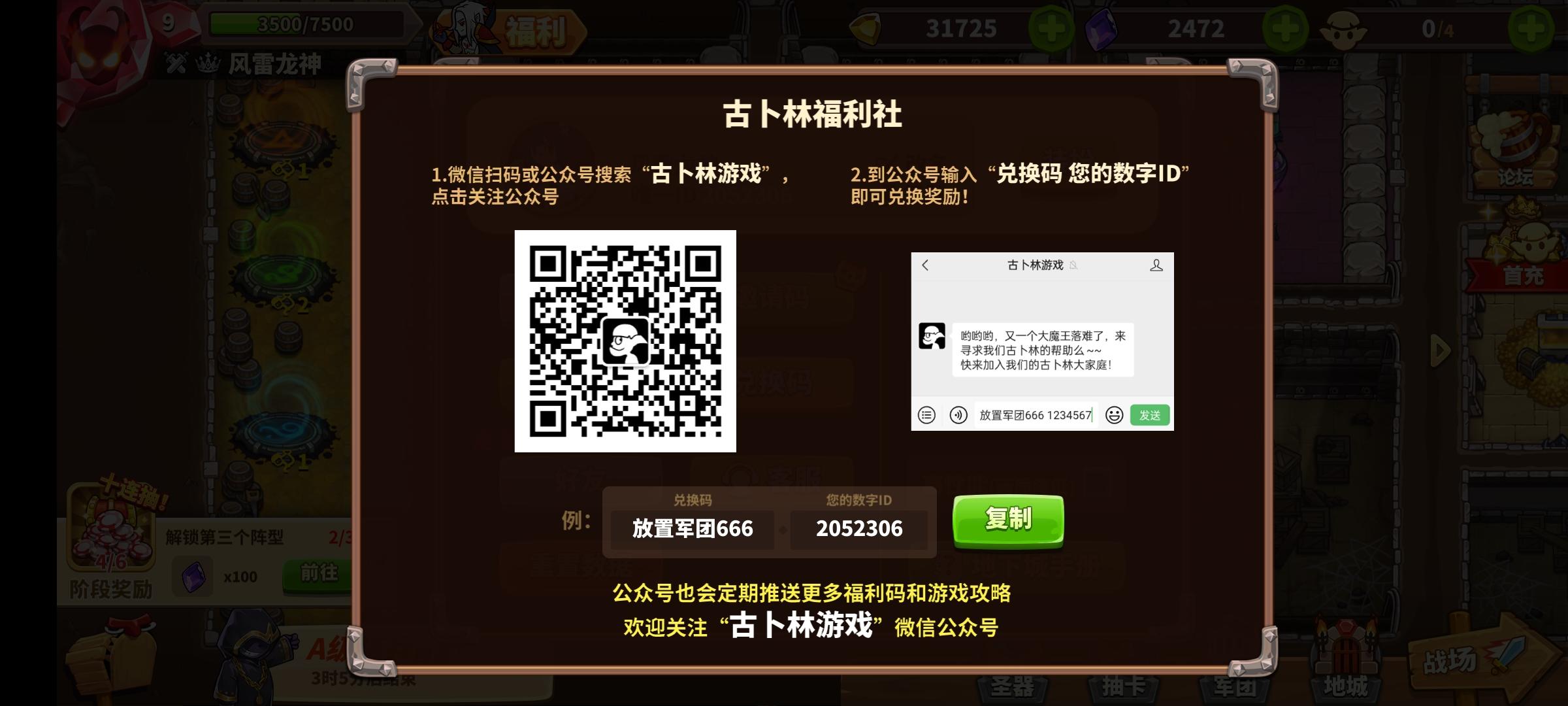 新手必做三件事、及阵容推荐,文章最后有三圣器加点图、随从质量排名和up池轮换表,建议收藏以便随时查看 第一:免费福利 必填邀请码: jqdgke,领取1000氪金! 注册新玩家24小时内使用可领1000氪金,一定不要超时!后期好友也可以互相交易高价回收中心物品。 另外关注公众号:古卜林游戏,根据公众号提示输入以下内容获取福利 1.放置军团666 (200氪晶) 2.FZJT666 (10000魔晶