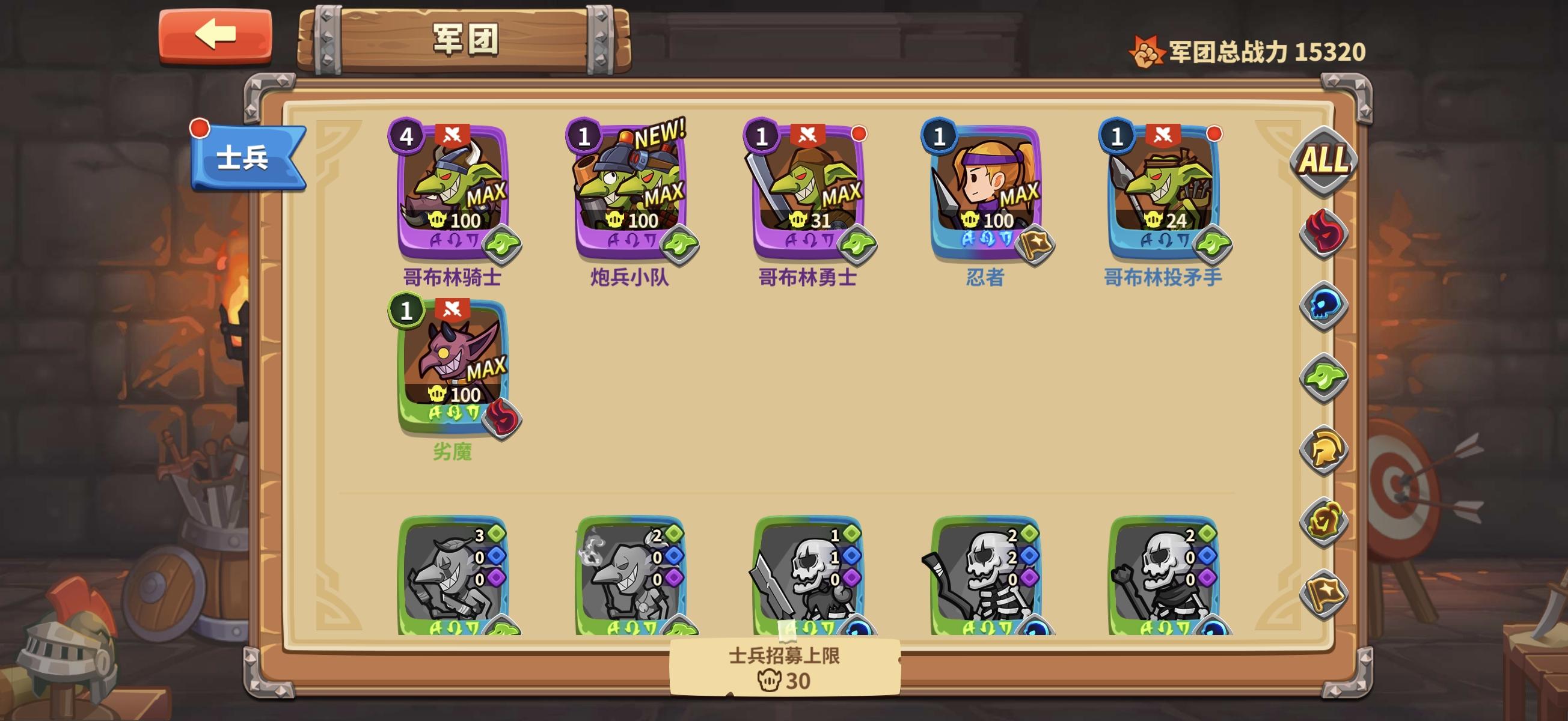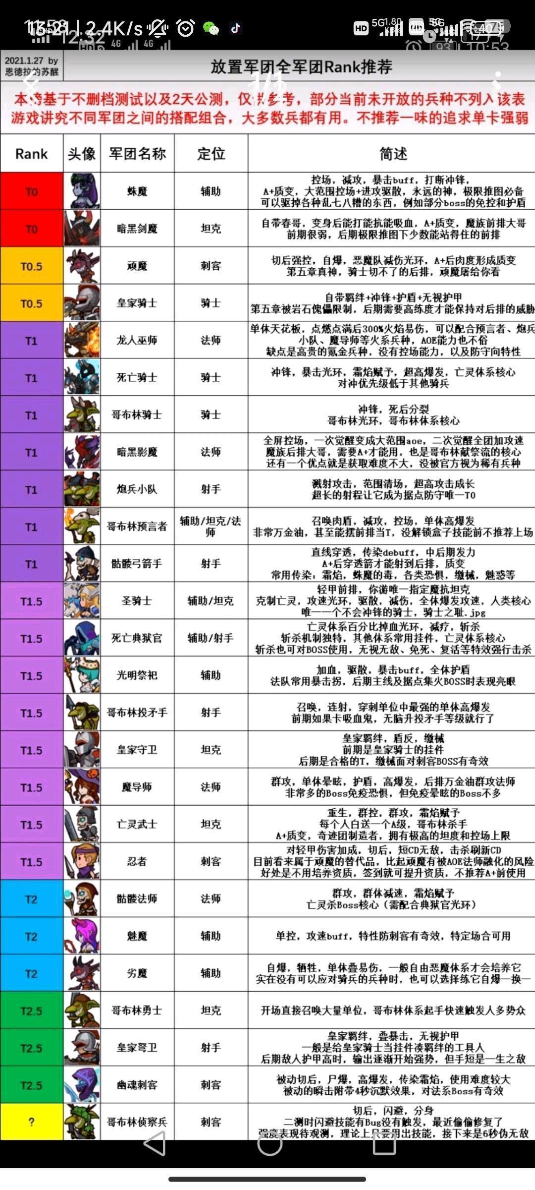 萌新玩这个游戏会遇到两种情况,一个是不知道把哪些去升级比较好,或者是一些不看攻略直接升级,结果在某一些关卡卡的很难受。 首先,放置军团这款游戏就比较特别:因为开局是由一个参考答案标准的。萌新玩到1-10会有一个金卡三选一A级本体,然后把英雄升个三级,再升阶。左下角就会出现用10筹码的任务(必出金,甚至双黄)。所以开局是有两次机会的 T0开局猪骑+哥炮;T0.5开局猪骑+哥预/影魔;T1开局猪骑。 甚