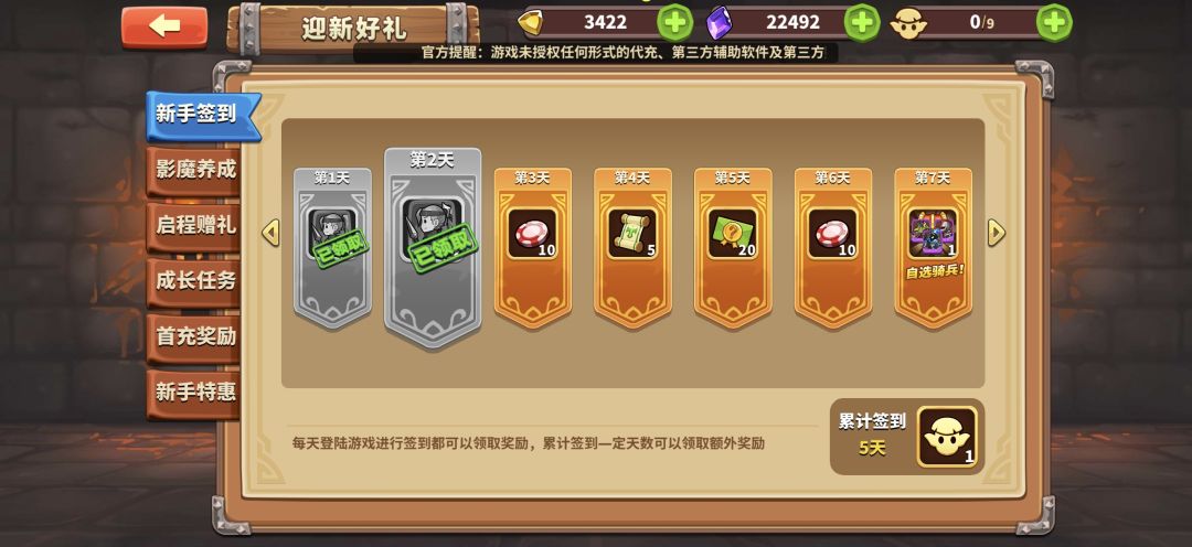 萌新可填邀请码:qgcgdc,领取1000氪金。 由于很多萌新前期卡关,我新创了一个小号从第一关打起 一、开局 进游戏一路跟随教程到第一次十连抽,第一次十连抽是从三组奖励三选一的,抽到什么很重要! 如图,最好抽到猪骑(猪骑就是哥布林骑士)、炮兵其中之一开局,猪骑更好,因为炮兵完成第一天任务就可以充6元得,猪骑要充30元才有。 这个游戏公认万金油推图阵容:猪骑、炮手、哥布林预言家、哥布林勇士、影魔。